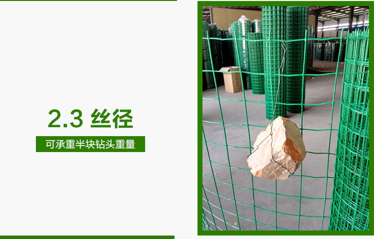 选用Q235材质铁丝焊接而成,铁丝经过硫化处理表面,再将PVC或PE、PP粉末涂其表面,具有附着力强、防腐性好,色泽光亮等特点。