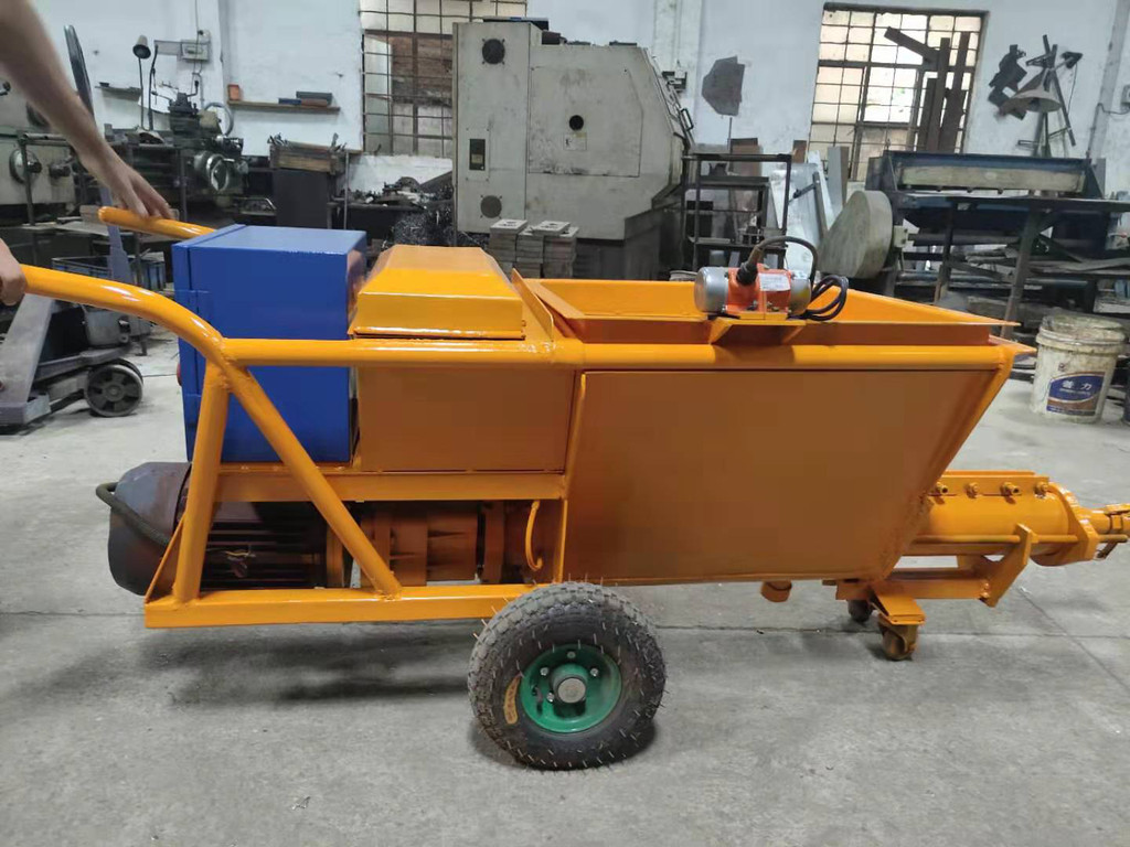 产品简介:螺杆式砂浆泵的原理是由螺杆在电机驱动下产生的挤压砂浆,使其产生一定的压力经输洪管道喷射出去。这种原理的砂浆泵具有设备小、结构简单、成本低廉等优势,被广泛应用于建筑领域的水泥基砂浆、石膏基砂浆的机械喷涂