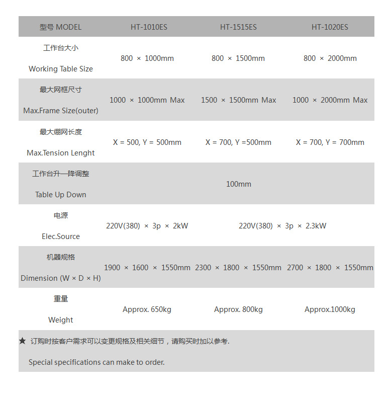 该系列适用于高精密、高张力网版制作,特别适合于不锈钢丝网的拉制