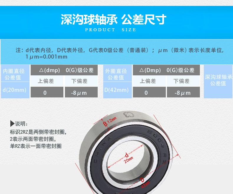 HRB轴承6004 2RZ C3哈尔滨深沟球轴承滚珠尺寸20 外径42高12mm