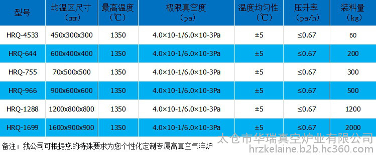 太仓华瑞真空炉业HRQ系列真空气淬炉,主要用于高合金工具钢、高速钢、模具钢,不锈钢的高压气淬及高温合金磁性材料等的真空淬火工艺, 也可用于低温粉末冶金的真空烧结,不锈钢及铜钎焊等。对装炉工件形状无特殊要求,淬火零件表面干净、变形量小,硬度高。