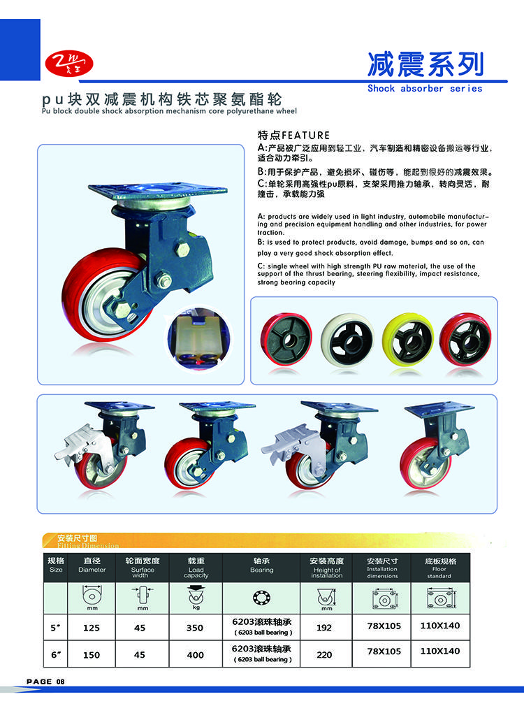 | 类型 | pu块双减震机构铁芯聚氨酯轮 |