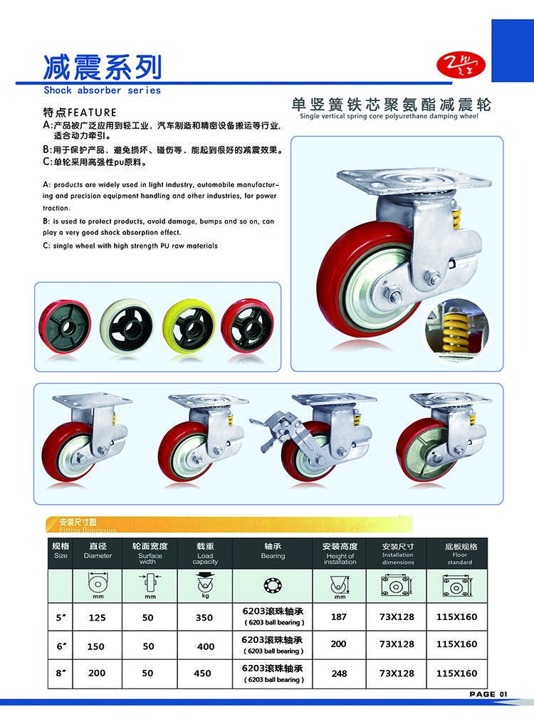 | 类型 | 单竖簧铁芯聚氨酯减震轮 |