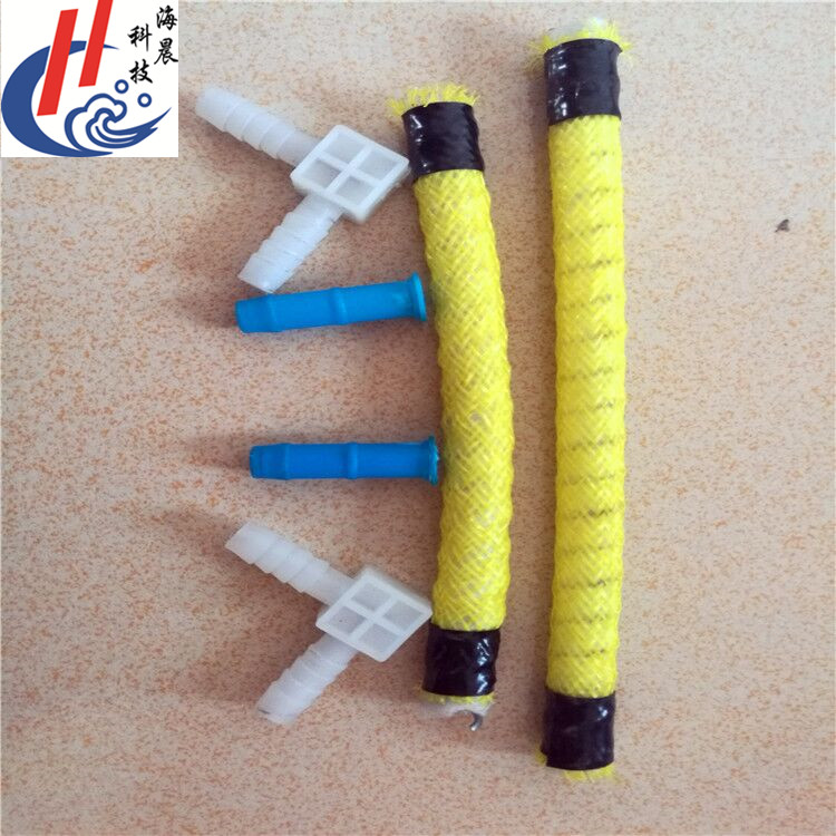 性能原理:混凝土浇注过程中,在承受外部混凝土压力时,包裹在注浆管外侧的橡胶盖条由于压力的作用紧紧贴在中心轴管的注射出料孔上,从而关闭整个系统,防止浇注过程中混凝土浆液混入注浆管。
