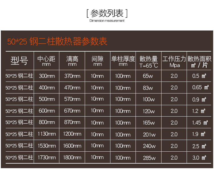 以上标价均为50*25型中心距600MM钢制二柱散热器每柱的价格!