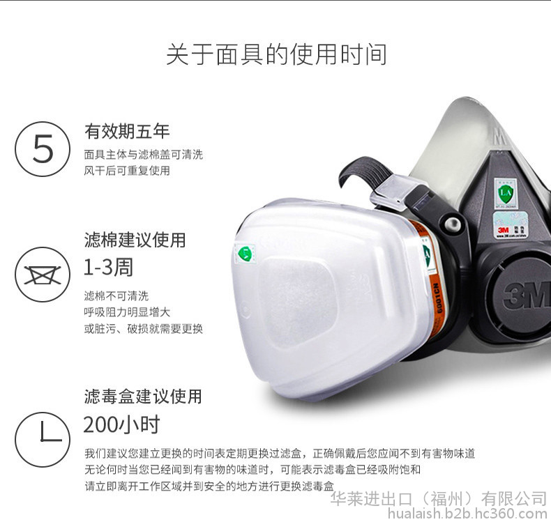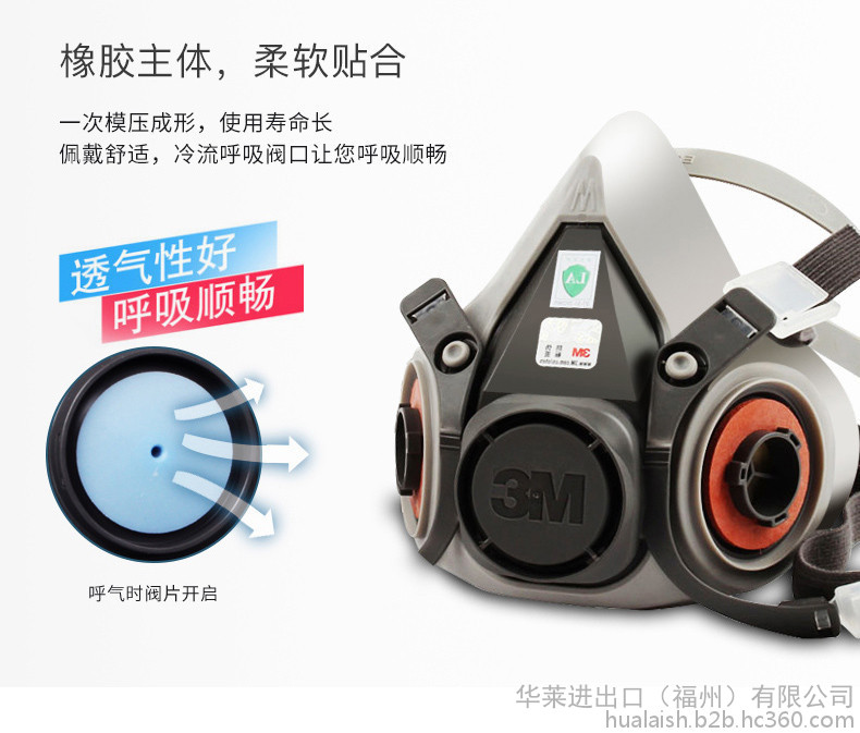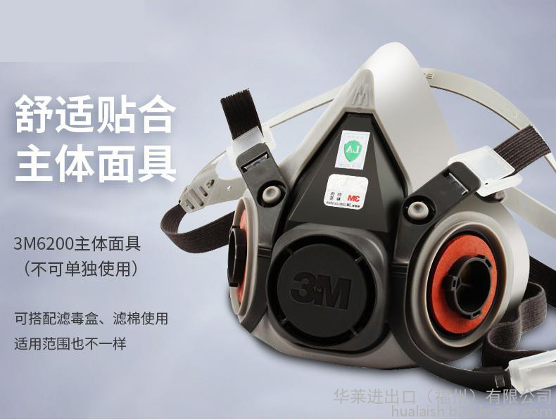 3M 6100小号/6200 中号半面型防毒面具 半面具 喷漆防毒面具 防尘面具