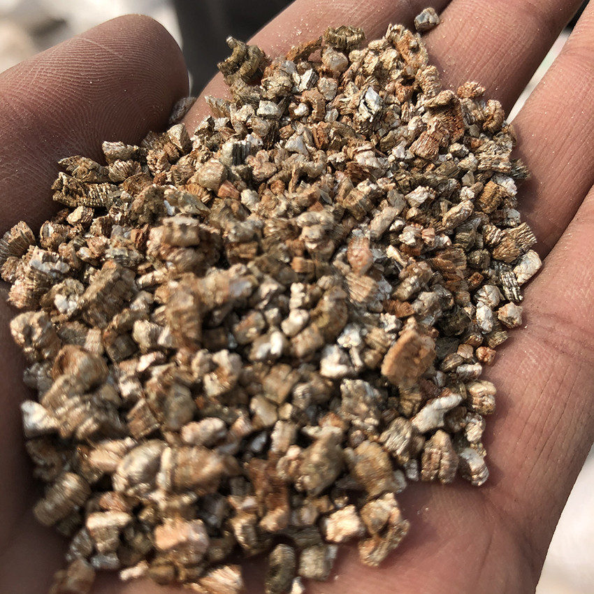 蛭石经高温焙烧后,其体积能迅速膨胀数倍至数十倍,膨胀后的蛭石平均容重100~130kg/m3,具有细小的空气间隔层,因而是一种优良的保温、隔热、吸音、耐冻蚀建筑材料、工业填料、涂料及耐火材料。膨胀蛭石广泛用于建筑、冶金、化工、轻工、机械、电力、石油、环保及交通运输等部门,国外主要用在建筑、绝缘、填料和农业、园艺等方面。