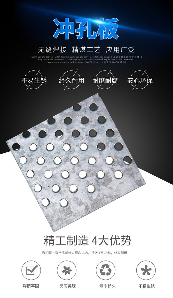 | 介绍 | 冲孔网是指在同材料上打上不同形状的孔。以适应不同的需求 |