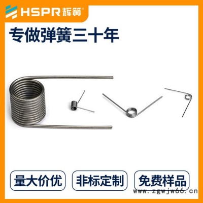 ??扭转弹簧属于螺旋弹簧。扭转弹簧的端部被固定到其他组件,当其他组件绕着弹簧中心旋转时,该弹簧将它们拉回初始位置,产生扭矩或旋转力。扭转弹簧可以存储和释放角能量或者通过绕簧体中轴旋转力臂以静态固定某一装置。这类弹簧通常是密身的,但是,簧圈之间有节距以减少摩擦。它们对旋转或旋转外力产生阻力。根据应用要求,设计扭转弹簧的旋向(顺时针或逆时针),从而确定弹簧的旋向。各圈或是紧密围绕或是分开围绕,能适任扭转负荷(与弹簧轴线成直角)。弹簧之末端可绕成钩状或直扭转臂。