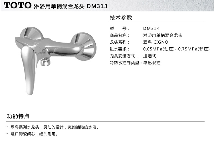 | 龙头安装方式:挂墙式 | 冷热水控制类型:单把双控 |