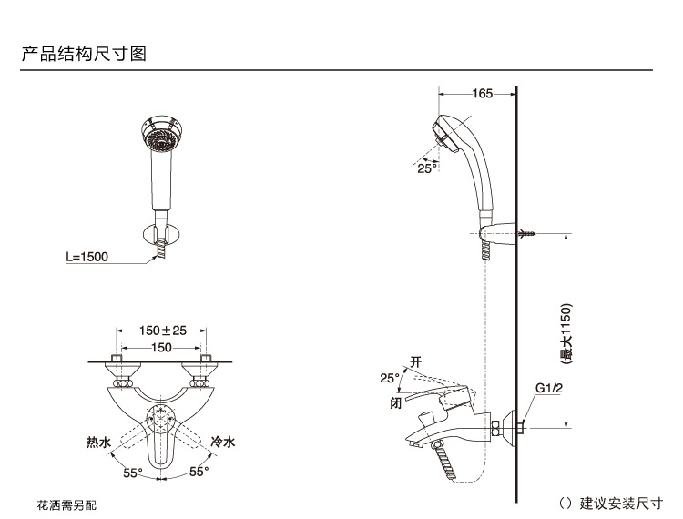 | 花洒支架类型:固定支座 | 龙头安装方式:挂墙式 |