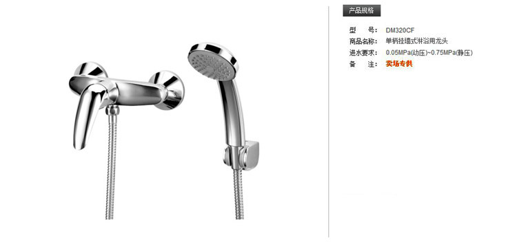 | 淋浴花洒龙头类型:单花洒浴缸龙头 | 花洒支架类型:固定支座 |