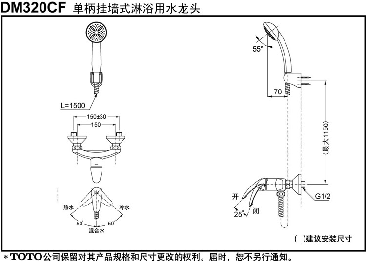 | 淋浴顶喷尺寸:130mm以下 |