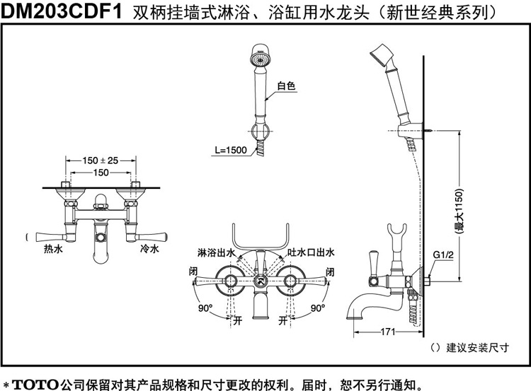 | 淋浴花洒龙头类型:单花洒浴缸龙头 | 花洒支架类型:固定支座 |