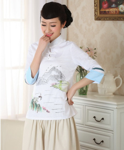餐饮茶楼艺师招待制服手绘国画 **个性化订制工作套装上衣 8130¥95.00