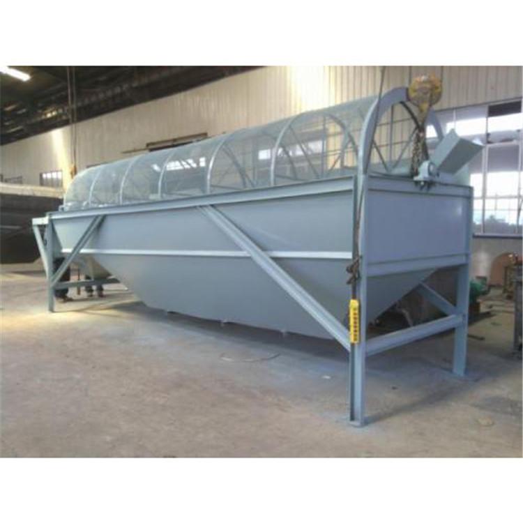 滚筒筛由电动机、减速器、底盘、密封帽,进料口和出口料组成。当物料进入滚筒装置后,由于滚筒装置的倾斜与转动,使筛面上的物料翻转与滚动,使合格物料(筛下产品)经滚筒后端底部的出料口排出,不合格的物料(筛上产品)经滚筒尾部的排料口排出。由于物料在滚筒筛的滚筒内的翻转、滚动,使卡在筛孔中的物料可被弹出,防止筛孔堵塞。