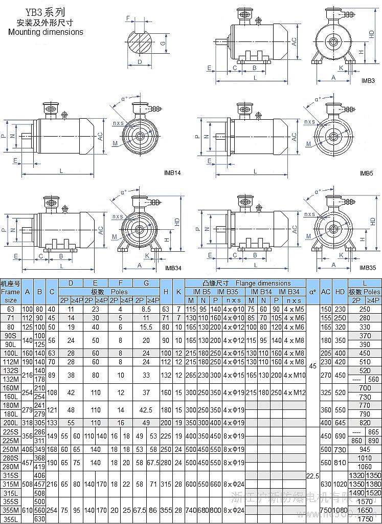 我公司专业生产YB3(防爆-**2级能效)、YB2(防爆-**3级能效)、YBPT(防爆变频调速)、YBD(防爆双速)、Y2(普通)、YVP(普通变频调速)、YD(普通双速)等系列三相异步电动机,机座号:63-355,极数:2-8极,额定电压:三相110-1140V(任选其一或双电压),额定频率:50-60Hz,可选配多种安装结构型式,并可定制各种特殊规格/尺寸。
