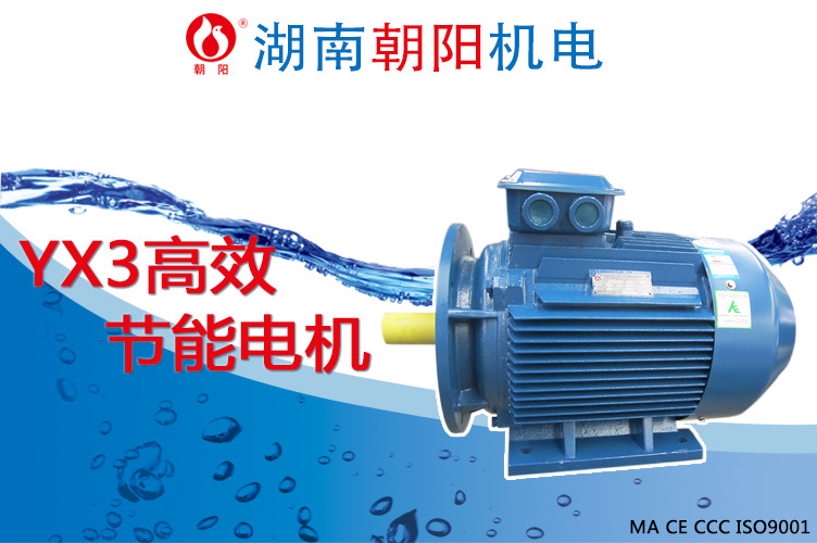 湖南朝阳机电YX3系列高效三相交流异步电动机是我国十二五期间更新换代产品之一,它符合国际电工委员会(IEC)标准要求,其能效指标满足IE2标准要求。它系全封闭、外扇自冷式、鼠笼型结构,具有设计新颖、结构紧凑、起动性好、噪音低、节能高效等特点。