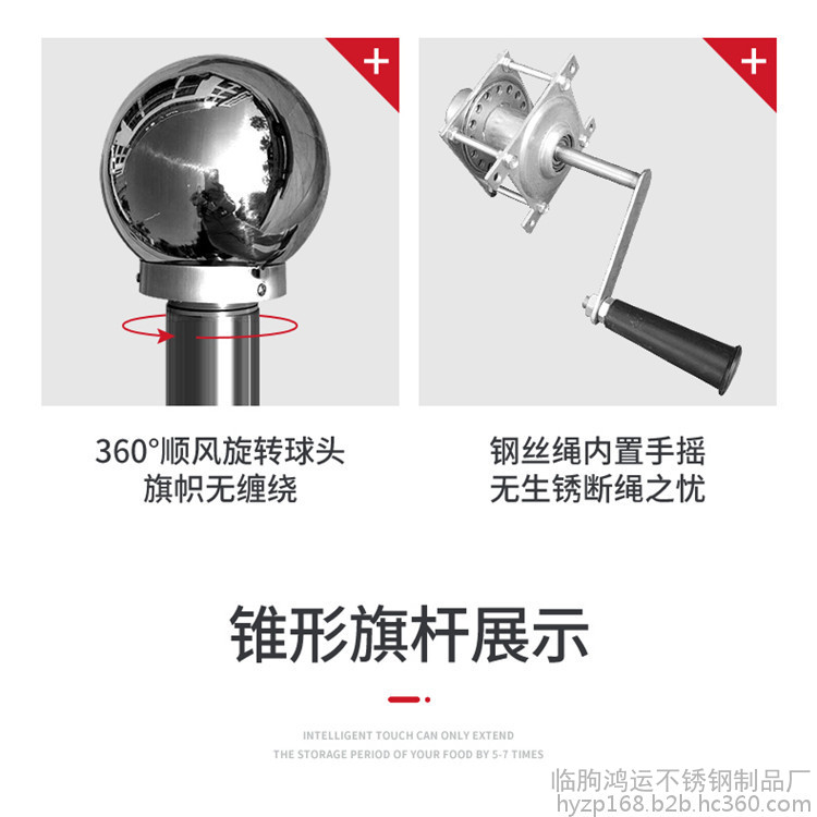 5. 旗绳采用特制的不锈钢丝绳,放在旗杆内部,不生锈,不易断,经久耐用;