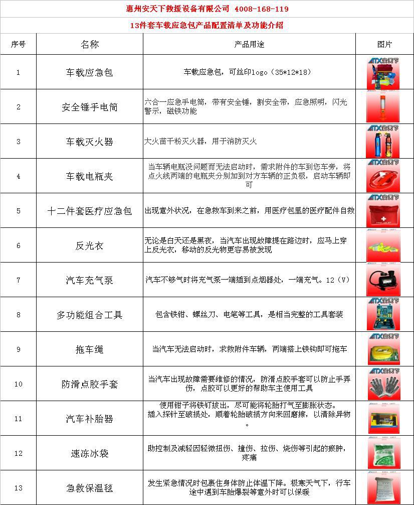 安天下全系列产品是根据**防灾减灾专家专业配置,所有物品均采用**正规检测认证合格的产品,包括消防检测、安全防护检测、医疗检测等,公司也有严格的质量保证体系,每一款产品都经过严格质量测试,确保灾难中生命的**大存活!应急包中产品可按实际用途、使用人数等选择组合搭配,请与联系安全顾问为您量身定做!