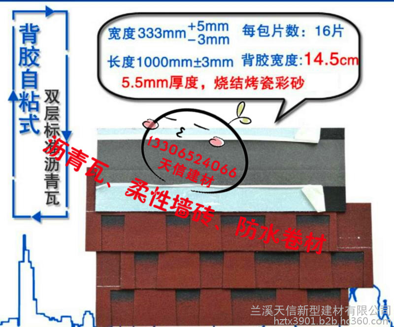 杭州天信防水材料有限公司销售部——沥青瓦、玻纤瓦、柔性墙砖具有以下特点