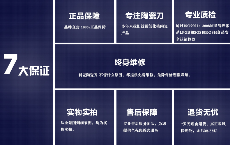 陶瓷刀辨别方法: 目前,陶瓷刀市场鱼龙混杂,真假难辩,使得不少消费者蒙受**,遭受损害,那么,懂得鉴别陶瓷刀**显得尤为重要。下面为大家支支招: 一、看表面: **的陶瓷刀表面光滑,其光可鉴,没有瑕疵,纹路细致,手感舒适,韧性高。劣质的陶瓷刀表面污点多,有灰点、裂纹、针孔,手感粗糙。二、看刀刃: 高品质陶瓷刀的开刃线光亮精细,均匀一致。质量不高的陶瓷刀开刃线较粗宽,不均匀且有断续。三、看细节: 真正的陶瓷刀非常注重细节,在它的刀背、刀**头都进行过精心的打磨和倒圆处理,有效地避免使用中伤手的现象。四、看材质: 陶瓷刀的材料是氧化锆粉。**的陶瓷刀采用粉粒直径比较大的氧化锆粉制作,因而刀刃会呈现明显的锯齿状。而且**的陶瓷刀其氧化锆的纯度也比较高,高纯度的粉粒使得刀刃看起来通透如玉,圆润纯粹,而劣质的陶瓷刀因为氧化锆粉中掺入了铝粉,刀刃光感暗哑,甚至有黑点。五、触刀刃: 在保证安全的前提下,用手指指甲轻摁刀刃,**的陶瓷刀不会发生碎裂,而低劣的陶瓷刀则会承受不了小小的压力而发生崩裂。六、试锋利: 把陶瓷刀往纸上切削,好的陶瓷刀不仅切削过程流畅轻松,而且可以把纸切得很细,但是不好的陶瓷刀会出现明显的阻滞感,切削出来的线条较为粗糙。七、抗跌落: 如果不慎让陶瓷刀从厨台上跌落,**的陶瓷刀不会发生断裂或崩口,劣质的则不然。**的陶瓷刀原材料稀缺,开采难度大,刀坯加工工艺复杂,打磨技术精湛,质检过关。因为它的制作成本比较高,所以价格也**比较昂贵,但是“一分钱一分货”,物超所值,值得信赖,因而也受到了广大消费者的热情关注。-------------------------------------------------------------------------------------------------------------------------------------------------------------------------------------