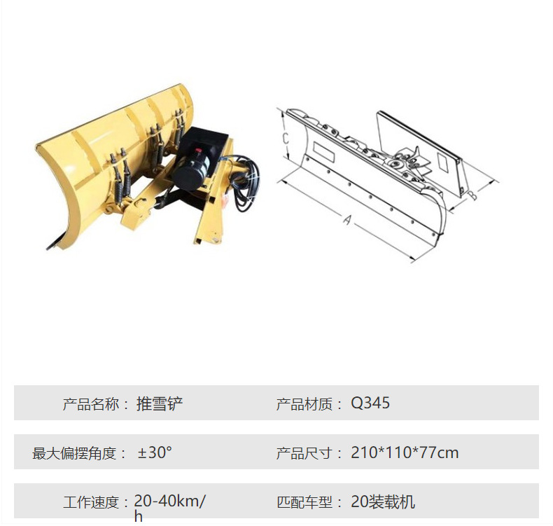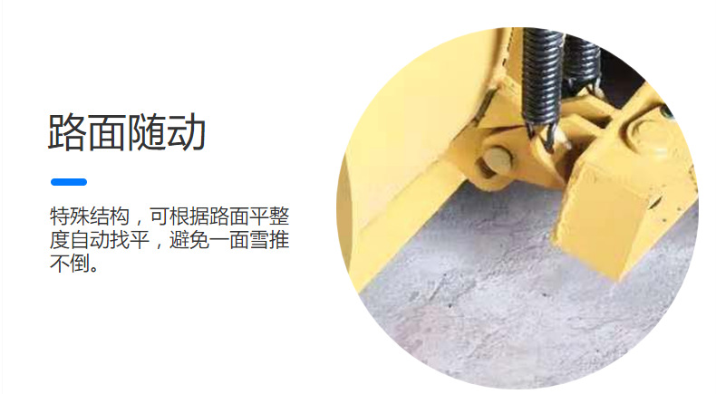 装载机除雪铲 卡车除雪铲 车载除雪铲的主要特点是: 1、左右摆角≥30°,并随意可调。 2、独立的液压操作系统,只需于装载机电瓶连接 可以工作。犁板式除雪铲,双向角度可调,除雪铲宽度为3.8米, 3、适用于30、50型以上装载机以及各类卡车、皮卡、洒水车、清扫车等环卫车辆加装,加装后不改变该设备的其他 4、作业宽度≥3.3米。 5、作业速度≥40公里/小时。 6、驾驶员在驾驶室内操作,安全可靠。 7、除雪板上部为整体式,避让功能采用分体式下翻板形式,当除雪铲铲刀任意一点遇到障碍均可通过,又可避免推大时,除雪铲翻转,并能有效地保护除雪铲及车辆的安全,其 大越障高度≥200mm。 8、除雪铲自重约1700Kg,在除雪作业过程中可保证除雪铲靠自重下压路面。 9、除雪铲除雪作业中,按路面横坡坡度,除雪铲铲刀具有自动调节功能。 10、除雪铲的安装、拆卸方便快捷。 11、除雪铲结构合理,可将雪推向一侧,并能起到抛雪功能。 12、除雪铲采用液压偏转,操作安全可靠。 汽车轻型雪铲,是高效,节能,环保,安全的冬季除雪设备 除雪铲主要由连接架,雪铲铲体、铲刀、液压系统、照明灯具组成。 主要应用于机场,高速公路、市政道路、干线公路(国、省道)、景区、厂区及广场的除雪。 独立液压系统,性能稳定可靠,操作灵活方便。 采用整体避障,避障高度200MM 能有效的保护路面和设备;特质专用铲刃,抗耐磨性能强。 独特连接架,适配各种型号拖拉机及轻型载重汽车的加装。 上下提升、左右偏转所有作业都在驾驶室内完成。 可以向左右转30°,钢结构加强设计,底部耐磨刃板可以更换,也可以选橡胶刃板,遇到障碍自动翻转,保证机件不伤,当越过障碍后铲板在弹簧的作用下自动回位。
