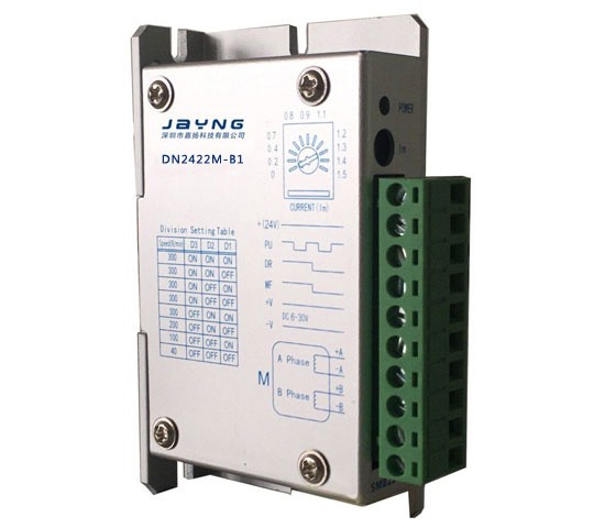 概述DN2422M 是为等角度恒力矩细分驱动器,驱动电压DC6-30V。适配电流在1.5A 以下,外径42mm 的各种型号的两相混合式步进电机。该驱动器使用双极性恒流斩波驱动技术,使用同样电机输出更大力矩和速度。采用独特控制电路,有效降低电机噪音,电机运行更平稳。