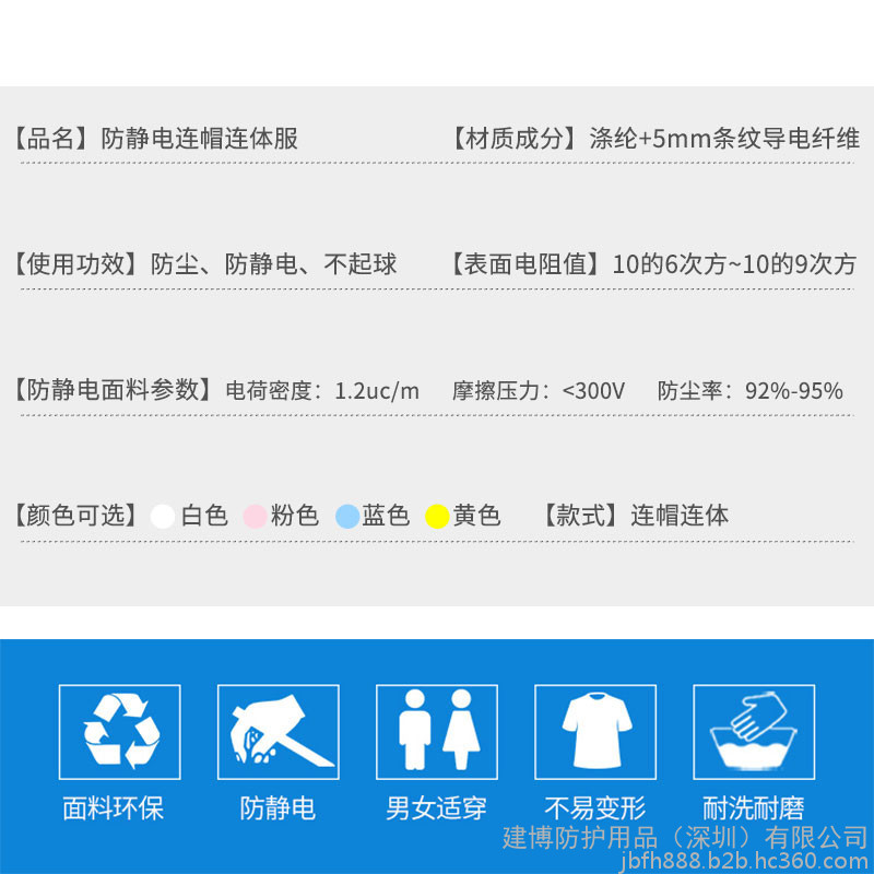 | 型号 | 防静电连帽连体服 |