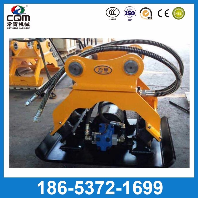 液压夯由液压马达、偏心机构、夯板组成,液压夯利用液压马达带动偏心机构转动,转动产生的震动经夯板作用于被夯物料,使之得到密实。液压夯具有重量轻,操纵方便、灵活、夯实效果好等特点,主要应用于斜坡面(堤坝等)的夯实、建筑物基础工程的夯实。