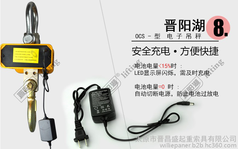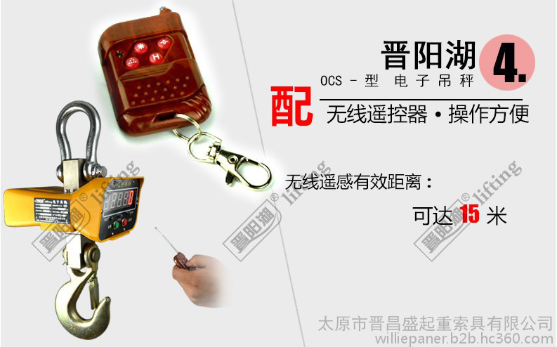 电子吊秤(Electronic hanging scale)是使物体处于悬挂状态进行其质量(重量)计量的电子衡器,称之为电子吊秤。要求使用场合必须有电葫芦,一般用于钢铁厂、卷板厂、炼钢厂、开平煎板厂、桥梁厂、重型机械厂、码头等。执行**行业标准GB/T 11883-2002。