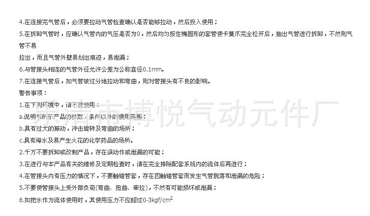 接头使用注意事项: