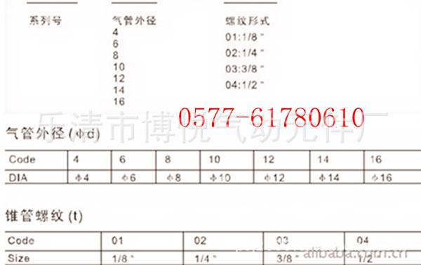 PC螺纹直通、PCF内螺纹直通、PL L型螺纹二通、PLF L型内螺纹二通、PLL L型加长螺纹二通;