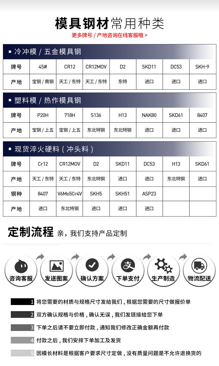 6、可施以氮化及火焰硬化处理,以增进模具的表面硬度及耐磨性。