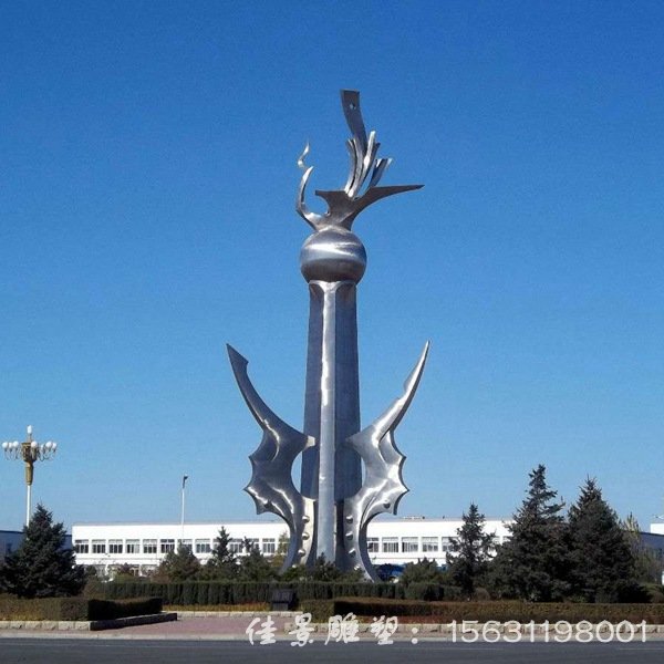 广场不锈钢柱子雕塑城市景观龙柱雕塑,不锈钢材质易发挥抽象风格的造型,不锈钢材质具有耐空气、耐蒸气、耐水等特性; 很多城市雕塑,公共艺术釆用抽象风格的不锈钢雕塑;不锈钢材质本身颜色为银白色,具有光泽,不易生锈易清洁、经久耐用之特点。不锈钢雕塑成为现代城市雕塑的主流,是城市环境公共艺术的重要组成元素,抽象风格起到点缀环境,画龙点晴的作用;不锈钢雕塑与现代都市生活相符,己经逐渐被大众接受,在市场上所占的份额越来越大,抽象风格雕塑逐渐超过传统写实雕塑的趋势。