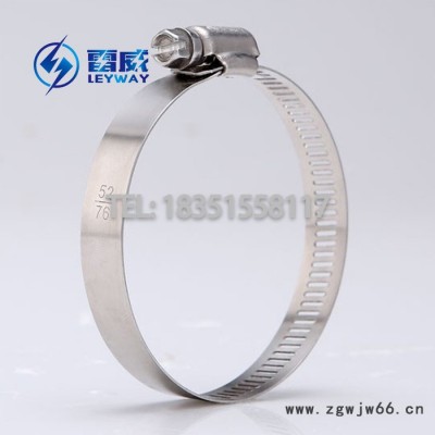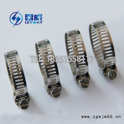 美式不锈钢喉箍,材料钢带宽度和厚度分别为8mm,12mm和0.6mm,此卡箍用途广泛,除汽车五金市场以外,也可用于家庭日常水暖以及液化气软管的维修。此类喉箍轻巧、紧凑的设计使其在受限的环境下得以轻松安装!喉箍的材质不同,其耐腐蚀性的强度也不同,客户可根据自己的实际应用选择合适的喉箍。