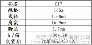 | C17 | 16.9mm | 8.7mm | 1.60mm | 7.2kg | 7.5kg | 18000/支 |