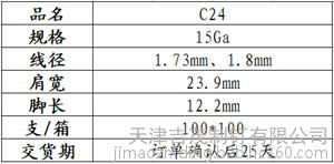 | C24 | 23.9mm | 12.2mm | 1.72mm,1.80mm | 7.1kg | 7.4kg | 10000/支 |