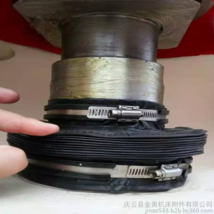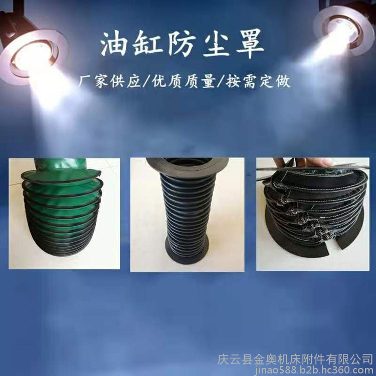 ??是一种圆筒式新型机械部件,为高频热合和缝制制作方法。高频热合防尘套内有钢丝圈支撑,缝制式防尘套内有PVC材料支撑,缝制式防尘套又可分为整体式、拉链式、活动粘贴式等。根据油缸、气缸的运行环境不同,采用不同的材质制作。有阻燃耐高温材料、进口材料、国内普通材料、恒温材料、低温材料。耐油、耐酸碱、耐腐蚀、耐拉伸。可防尘、防水、防油、防乳剂和化学品。可任意弯曲伸缩。更能适应机械设备的瞬时高温、高压、高速摩擦等的特有恶劣环境下工作。根据客户需求规格生产制作圆筒型、锥型、灯塔型等规格形状。两端连接方式有径口卡箍、两端连接法兰盘式、两端连接粘接式,法兰盘材质又分为PVC板法兰盘、金属法兰盘。