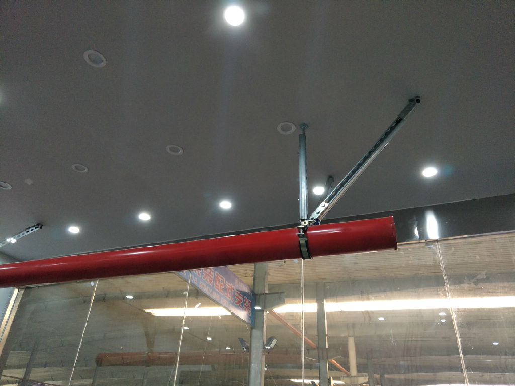 (1)管道和电线套管允许纵向偏移,但不得超过**大侧向支撑间距的1/16;风管允许偏移,但不得超过风管宽度的2倍。(2)水平管道在90°转弯时,需设抗震支吊架;其他角度转弯长度大于抗震设计间距的1/16时,需设侧向及纵向抗震支吊架。