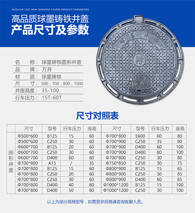 | 型号 | 球墨铸铁盖板 |