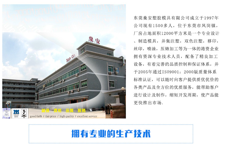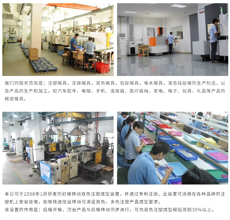 燊安塑胶模具有限公司,成立于1997年,现有员工1000多人,拥有**的专业技术人员和管理人员,我们专业生产塑胶模具、压铸模具、双色模具、CNC加工、钣金冲压。