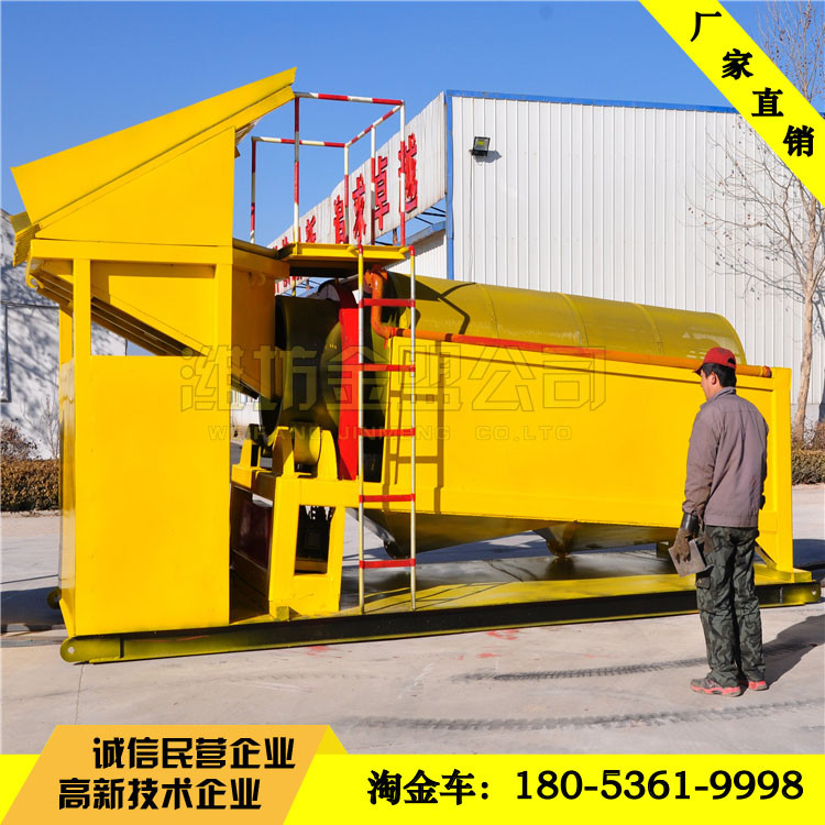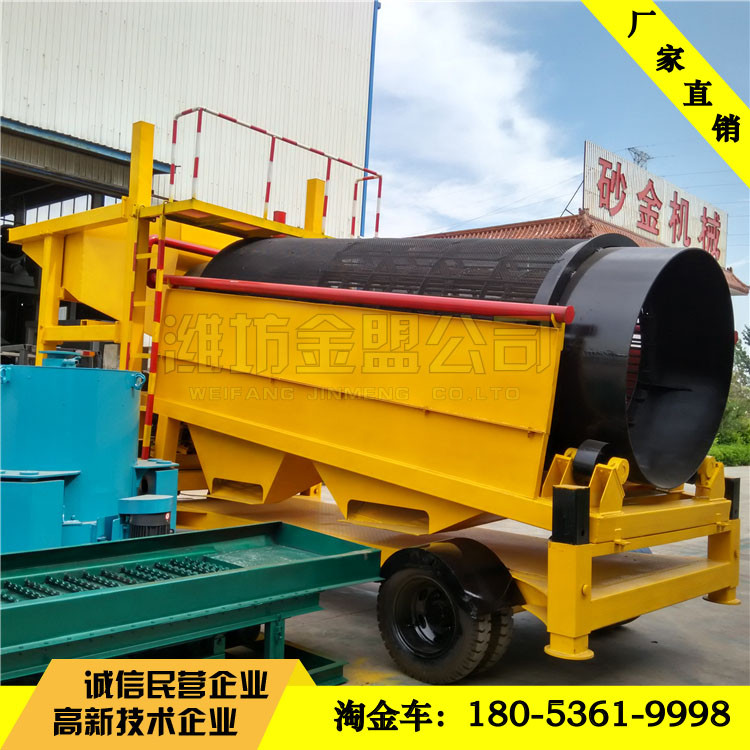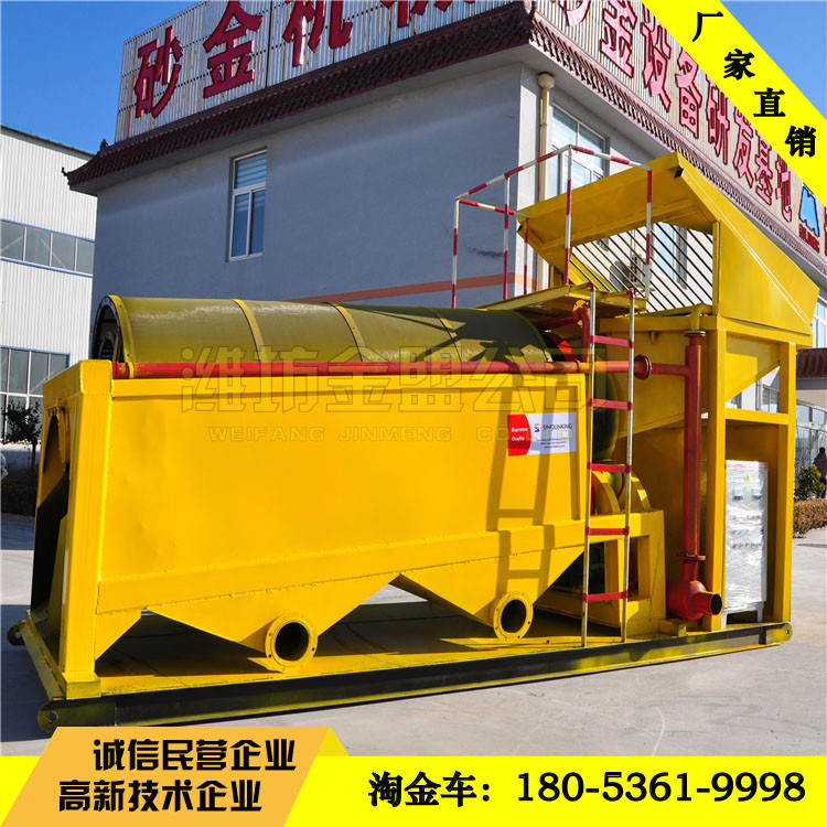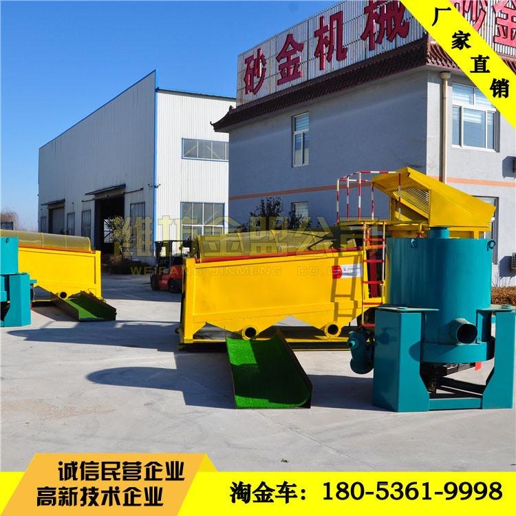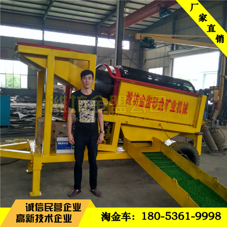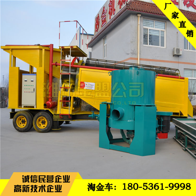 移动淘金车是一种在陆地上可移动的淘金设备,它有着结构紧凑、整体性强、重量轻、处理量大、操作简单、工作可靠,且易维护、移动方便等特点。该设备主要用于旱地沙滩、河道是一种重力选矿设备主要用于沙金矿的和脉矿中的单体金的回收工作。