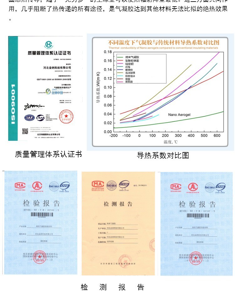 ● 气凝胶隔热材料结构力好,抗压强度高,性能稳定,使用周期长