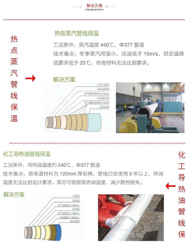 1.蒸汽管道保温 2.汽轮机和阀门保温 3.城市供热管道保温