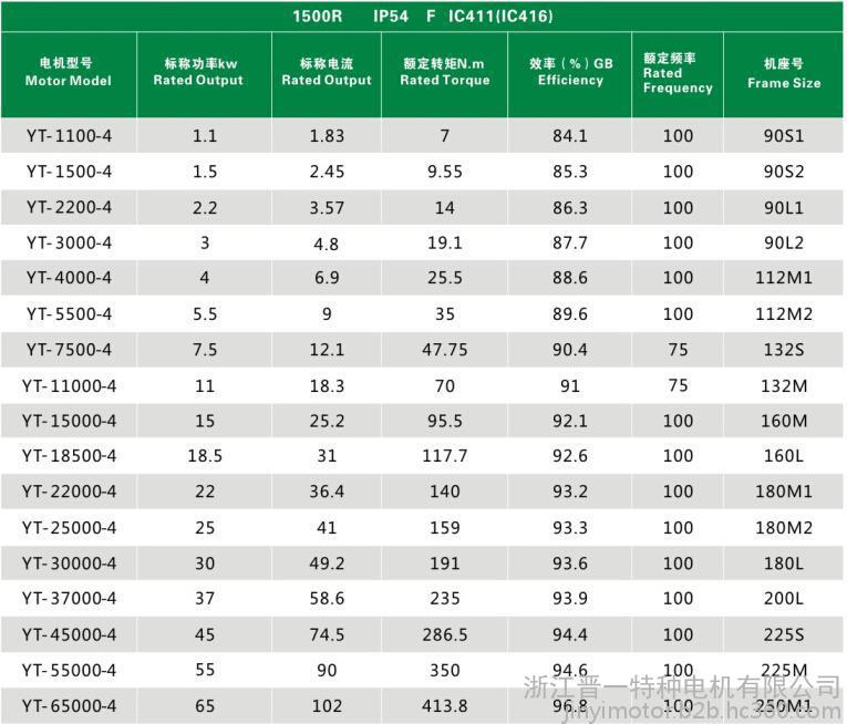 注:异电压电机加价3%,若有特殊需要,可按用户需求提供!