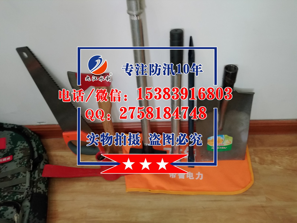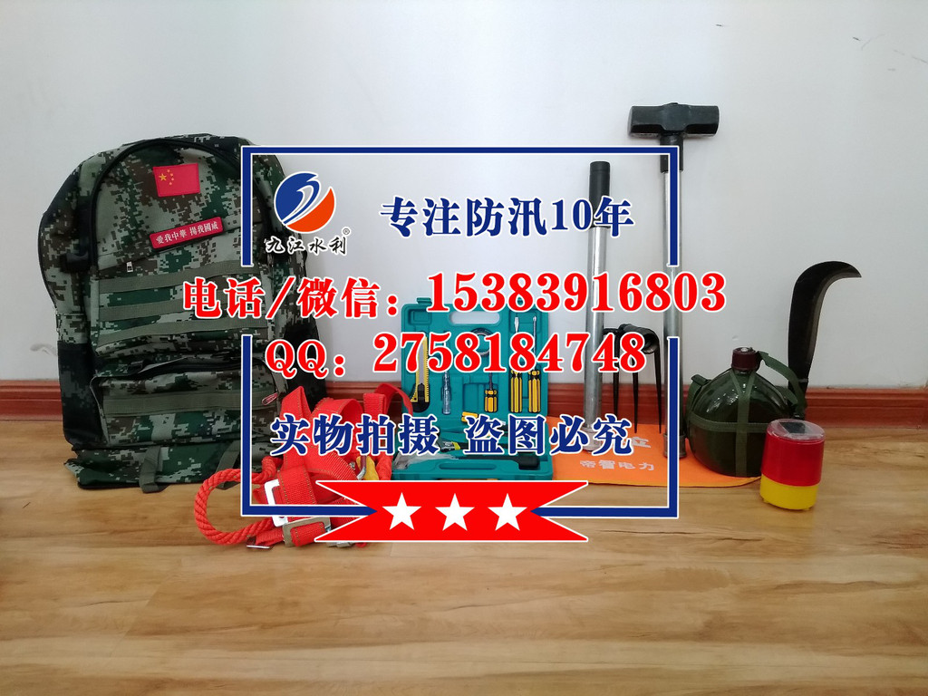 四、防汛组合工具包19件套:含(镐、钯、锄头、十磅锤、**、方铲、电筒、水鞋、防汛战斗服、防寒雨衣、救生绳、双背带、救生衣、毛巾、水壶、头盔、消防斧头、信号灯)组合工具。该组合轻便、工具配备齐全适用于救援队员适用。