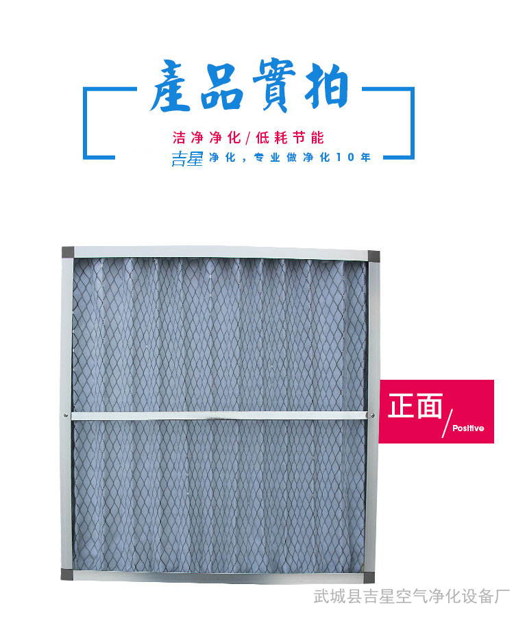 初效板式过滤器采用表面氧化铝挤型材,内部铺以滤料骨架,整体结构紧凑,重量轻,易于安装拆卸。滤料采用**聚合成纤维,其进风面蓬松,出封面紧实,在保证效率的同时,提供了较大的容尘量、合理的滤芯褶数设计,增加了有效的过滤面积,同时降低了阻力,增加了容尘量。过滤器使用一段时间后,可吹洗,重复利用,节省运行成本。采用金属网状或者是镀锌铁骨架支撑滤料,可满足各通风系统 的运行风速要求。