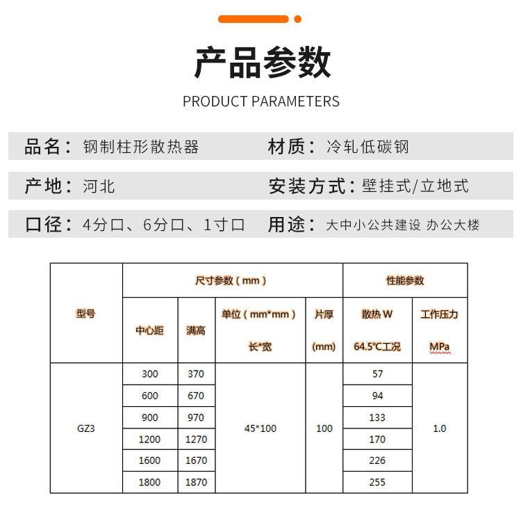 钢制柱形散热器特点: