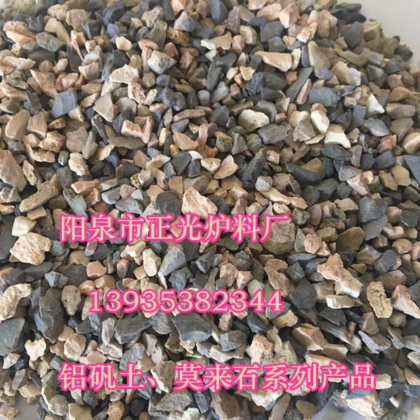 耐火材料行业所称的铝矾土通常是指煅烧后Al2O3>=48%、而含Fe2O3较低的铝土矿,高铝矾土熟料是经过煅烧的铝矾土矿。熟料为灰白浅黄及深灰色,它主要用于高铝质耐火材料,也可用来制作电熔棕刚玉。